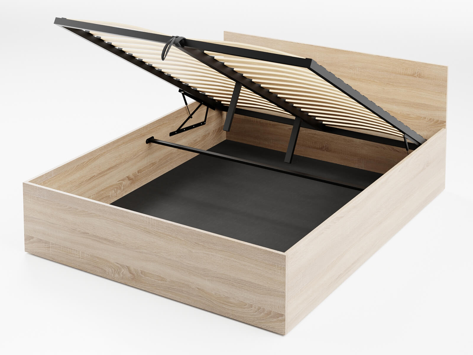 Postel DM1 160x200 s roštem a úložným prostorem, dub sonoma