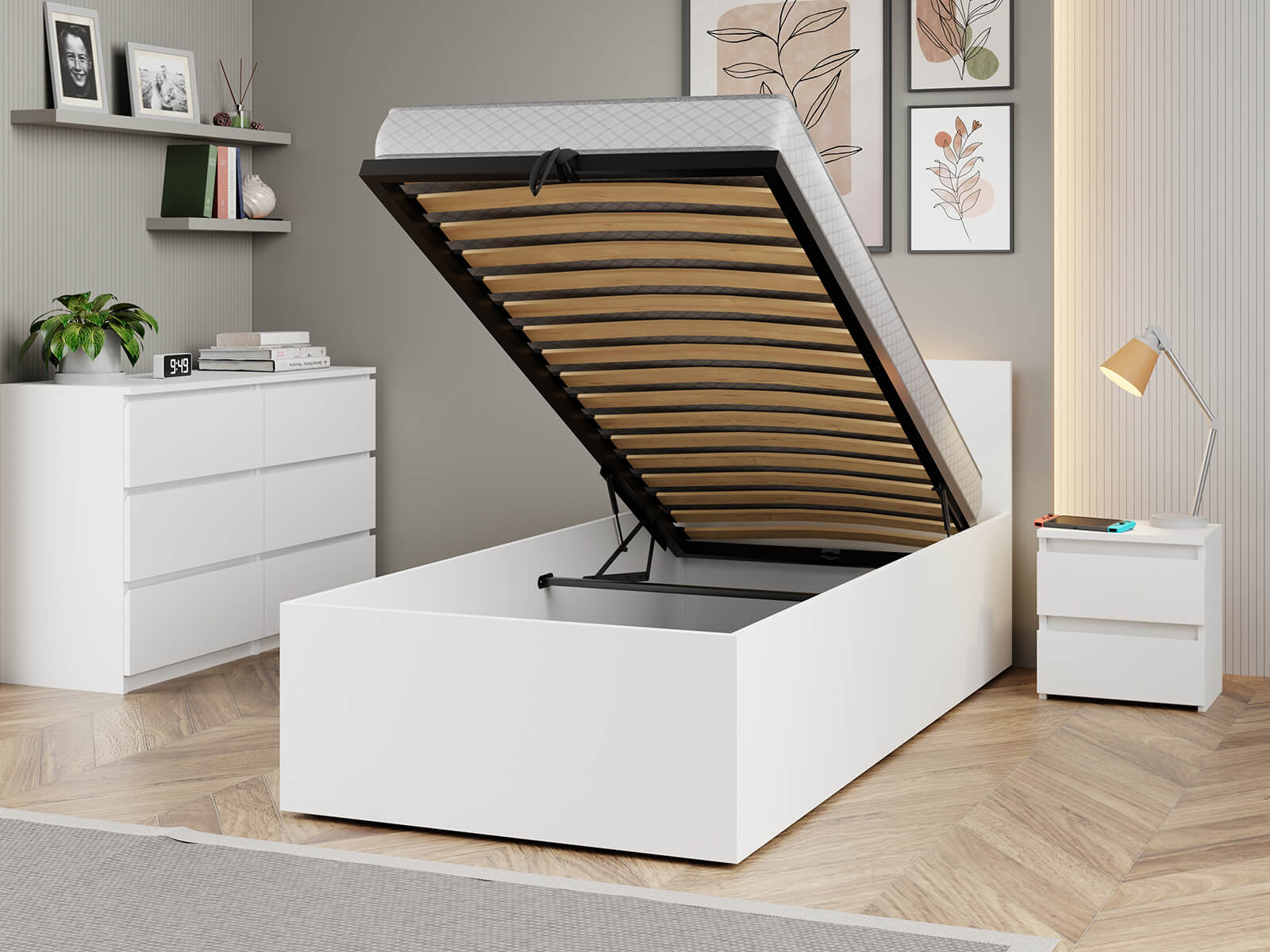 Postel DM1 90x200 s roštem a úložným prostorem, bílá