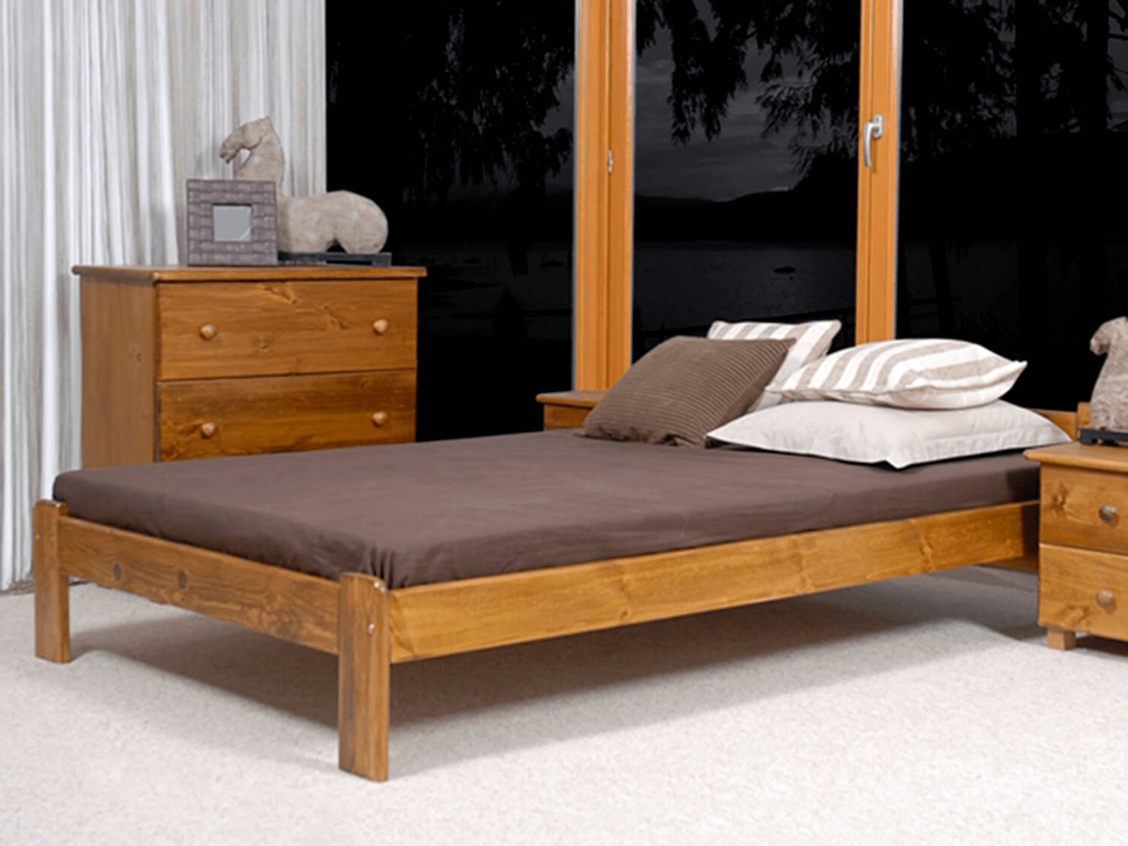 | Postel Jasněna Postel Jasněna je vyrobena výhradně z přírodního borovicového dřeva, které zajišťuje pevnou konstrukci. Minimalistická forma se dokonale integruje s klasickým nebo moderním řešením vnitřních prostor. Nábytek dokonale spojuje eleganci a pohodu, zajišťující ložnici univerzální charakter. Jednoduchý design dodává místnosti dekorativní přízvuk, při zachování snadné údržby. Model Jasněna přináší do místnosti harmonii a ideální podmínky pro relaxaci. Sada obsahuje pružný rošt, vyrobený z 12 lamel z břízového dřeva spojených látkovou páskou. Tento nábytek je vyroben z borovicového dřeva nejvyšší kvality s 3 krát prováděným nátěrem ekologickými barvami. Jako jedni z mála používáme pro lakování nátěrové hmoty s atestem Národního ústavu hygieny. Naše laky mají povolení užívání na předměty, s nimiž přicházejí do kontaktu děti. (soulad s normou DIN EN 71, cz. 3). Postel je doručováná v balících. Zboží je částečně smontované. Pro složení stačí pouze spojit bočnice s hlavní části a připevnit rošt do rámu postele. |