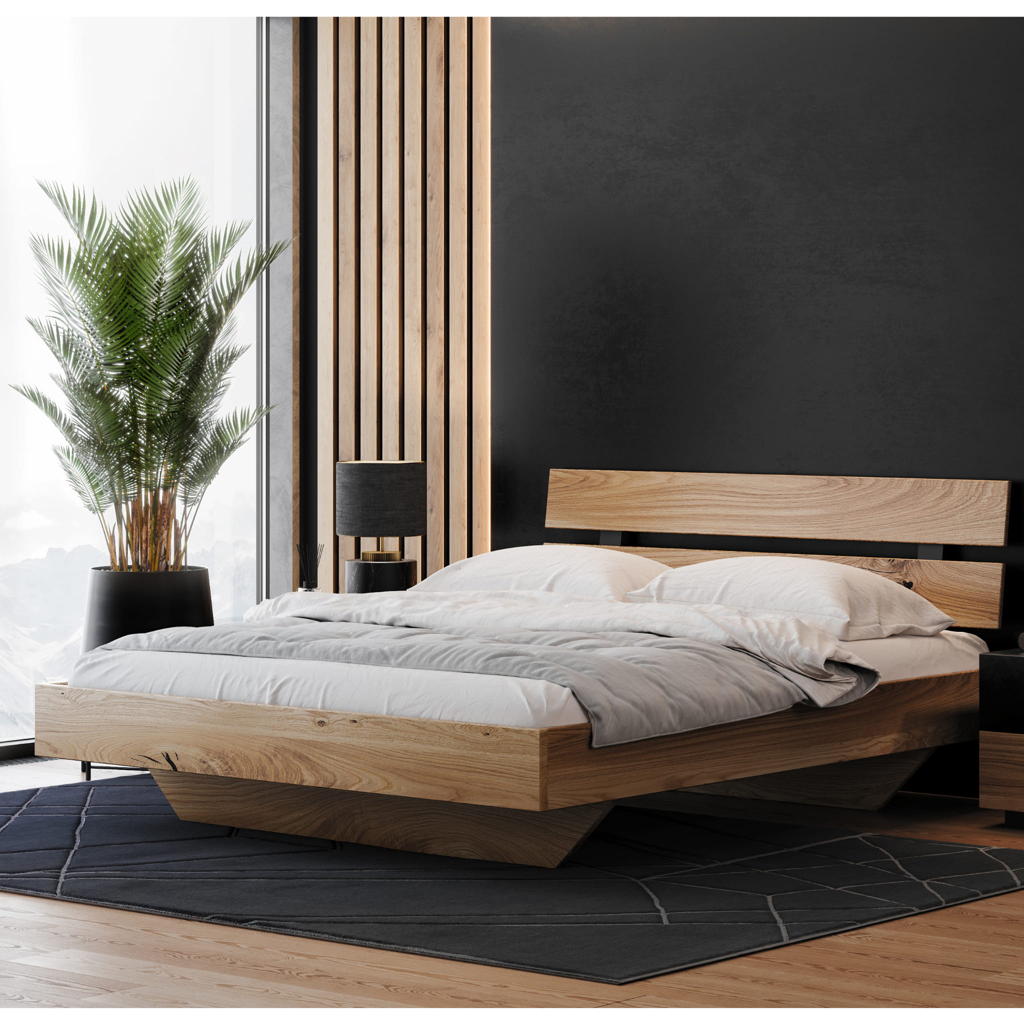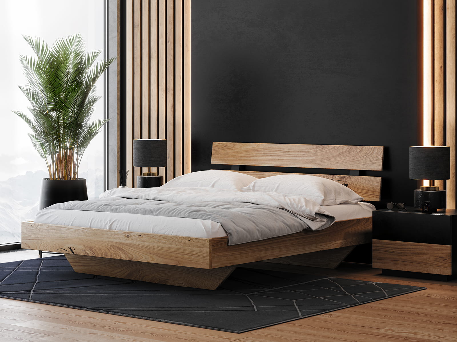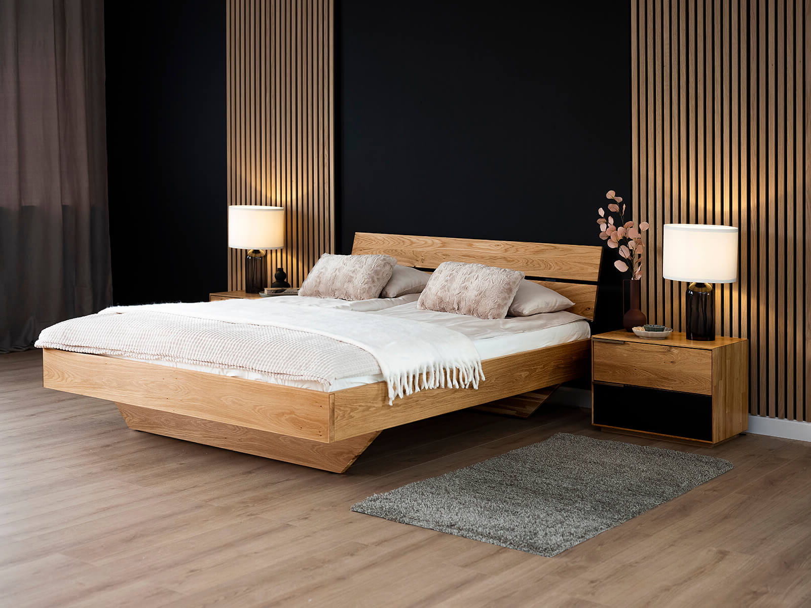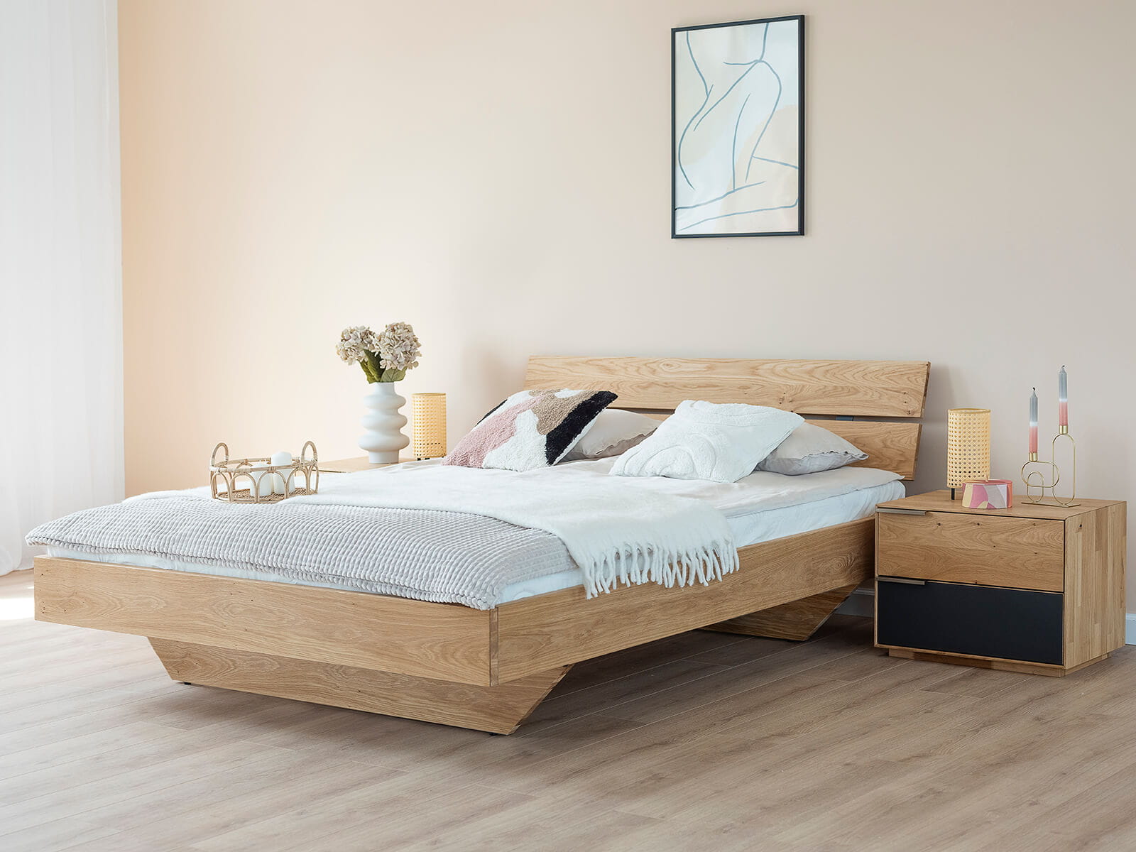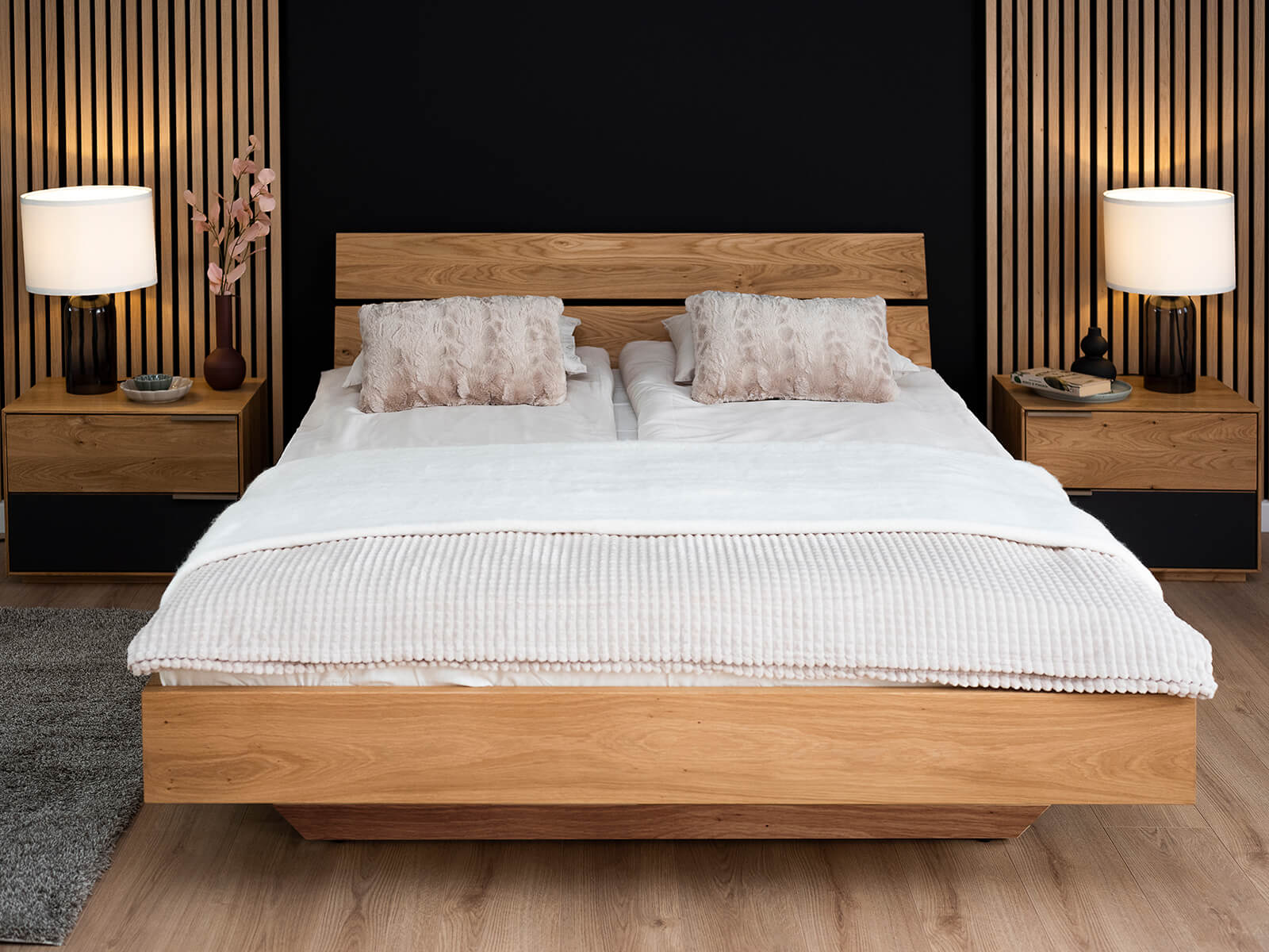 Tato jedinečná postel Rossano z masivního dubového dřeva potěší svou přirozeností a nadčasovou elegancí. Rám postele stojí na stabilních masivních nohách. Obrácené nohy opticky odlehčují masivní konstrukci a vytvářejí dojem postele zavěšené ve vzduchu. Opěradlo je připevněno k rámu postele pomocí kovových držáků.