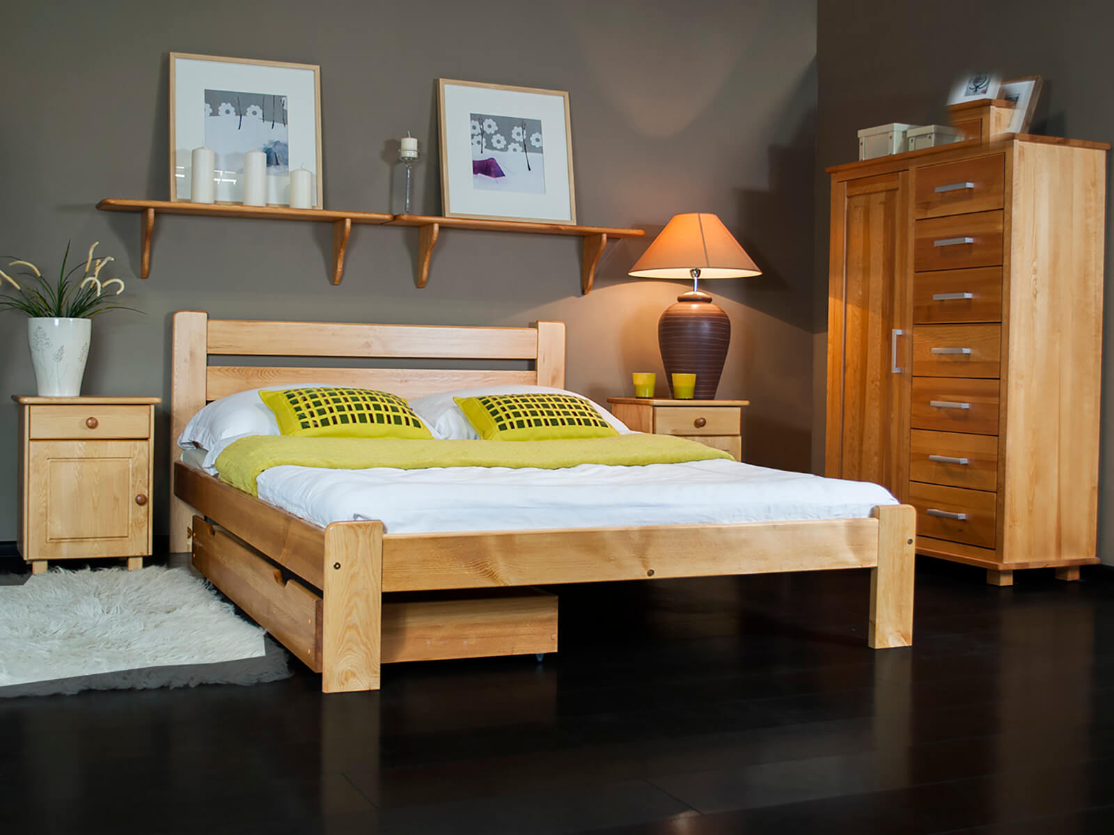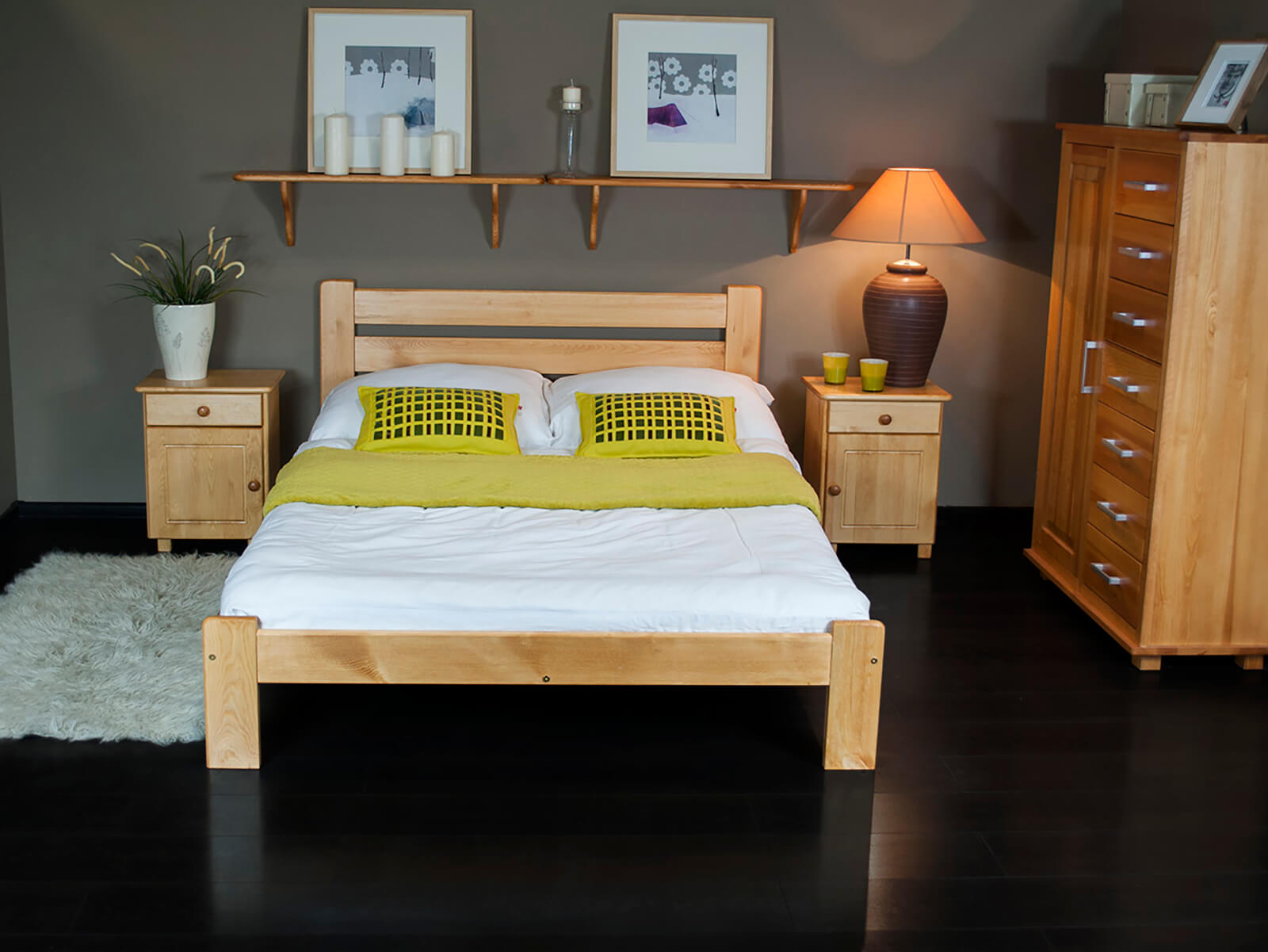 o produktuDvoulůžková postel z masivu 160x200 Eliza je vyrobena výhradně z přírodního borovicového dřeva, které zajišťuje pevnou konstrukci. Minimalistická forma se dokonale integruje s klasickým nebo moderním řešením vnitřních prostor. Nábytek dokonale spojuje eleganci a pohodu, zajišťující ložnici univerzální charakter. Jednoduchý design dodává místnosti dekorativní přízvuk, při zachování snadné údržby. Model Eliza přináší do místnosti harmonii a ideální podmínky pro relaxaci.