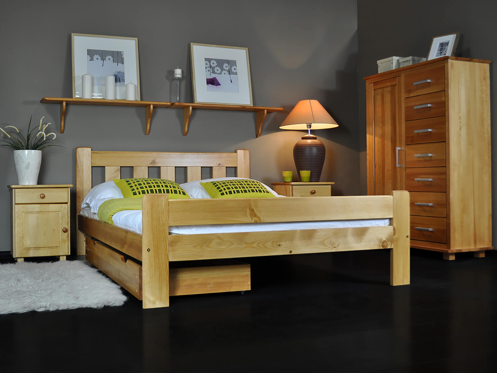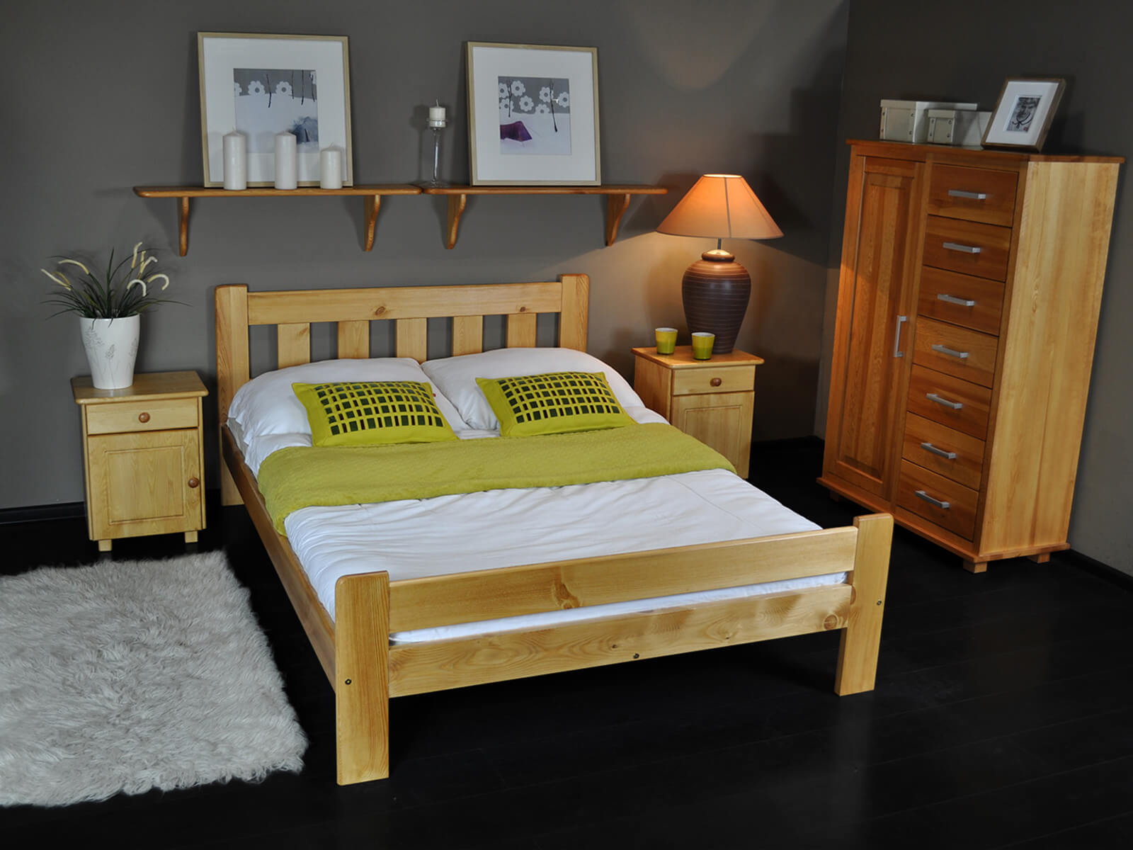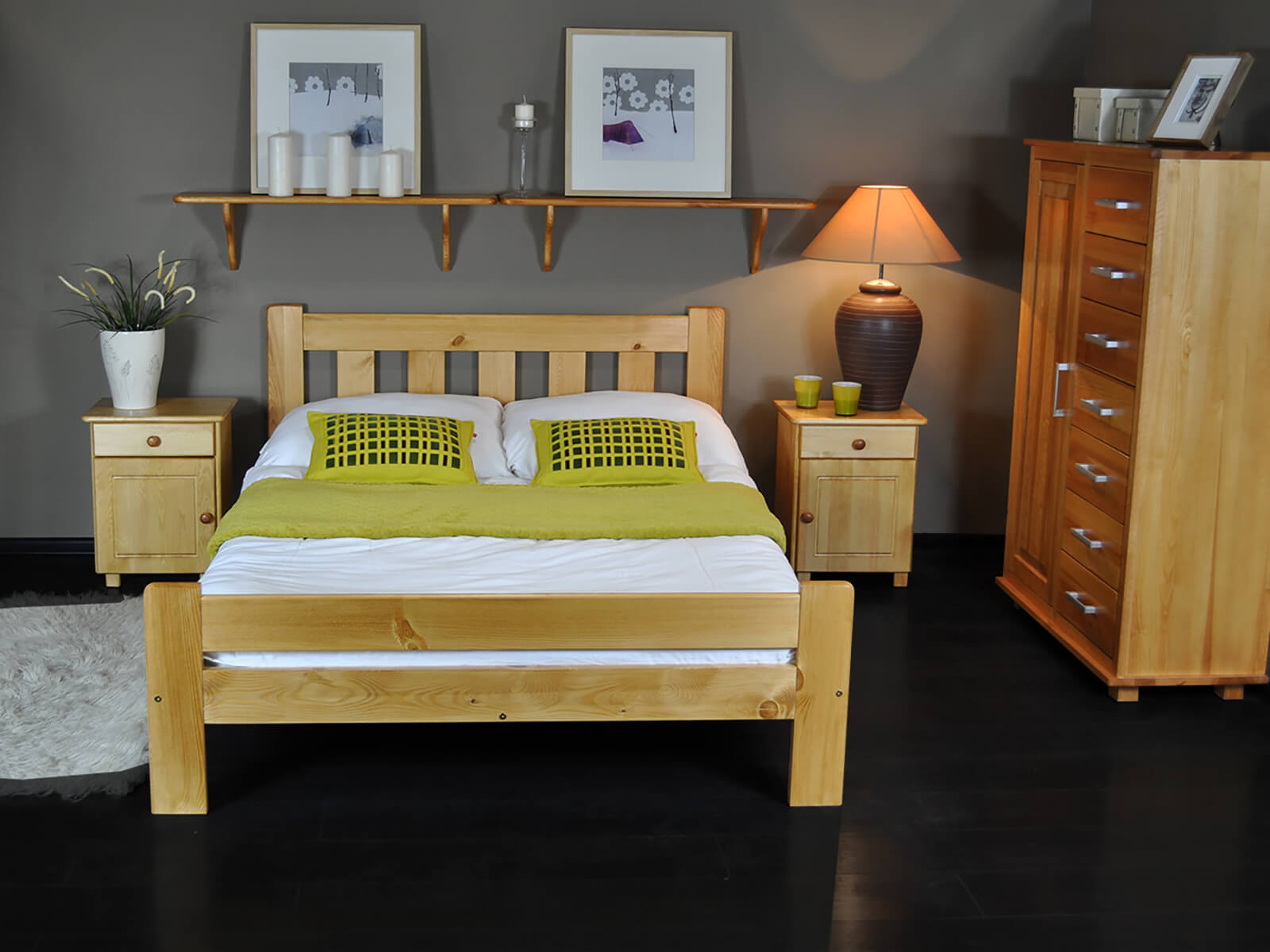 o produktuDvojlůžko 160x200 Greta je vyrobena výhradně z přírodního borovicového dřeva, které zajišťuje pevnou konstrukci. Minimalistická forma se dokonale integruje s klasickým nebo moderním řešením vnitřních prostor. Nábytek dokonale spojuje eleganci a pohodu, zajišťující ložnici univerzální charakter. Jednoduchý design dodává místnosti dekorativní přízvuk, při zachování snadné údržby. Model Greta přináší do místnosti harmonii a ideální podmínky pro relaxaci.