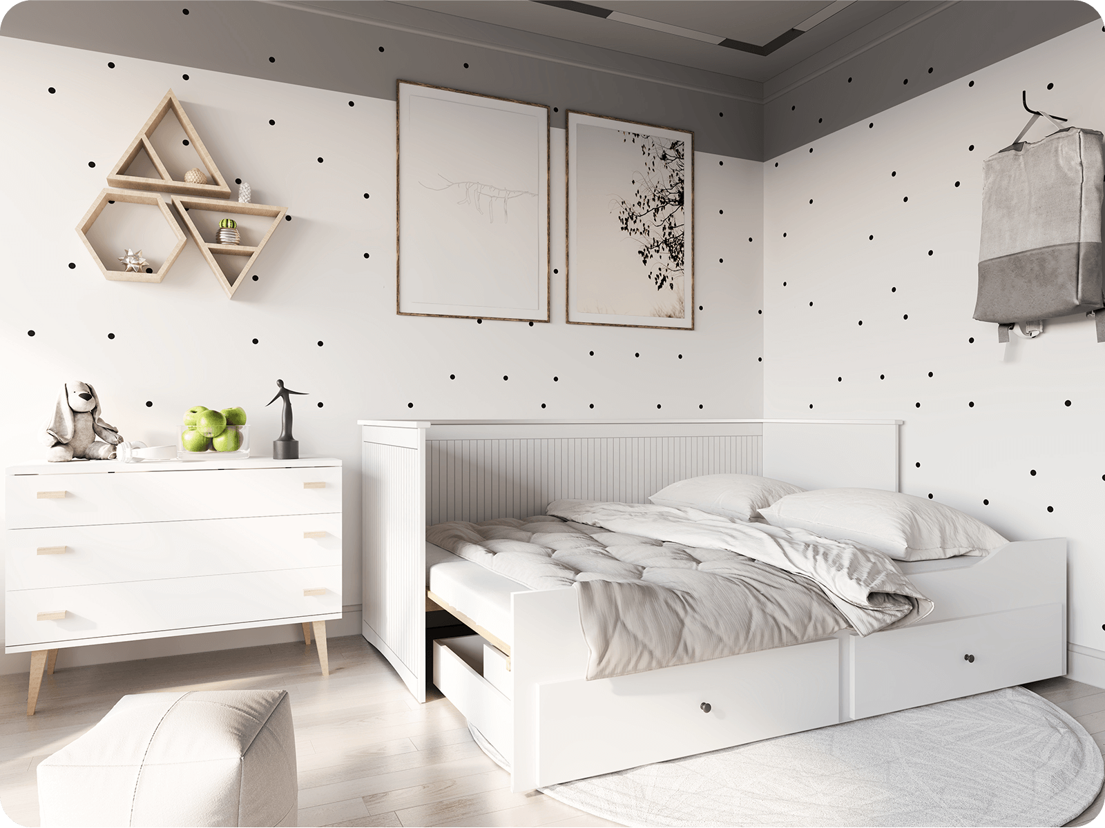 Představujeme revoluční řešení pro váš domov - naši pohovku se dvěma zásuvkami. Jedná se o bezkonkurenční kombinaci praktičnosti, funkčnosti a elegance, která promění váš interiér. Postel Helmes bude perfektním řešením do dětského pokoje. Poslouží také jako rozkládací postel pro mladé lidi a skvěle se hodí do menších bytů, kde záleží na každém prostoru.
