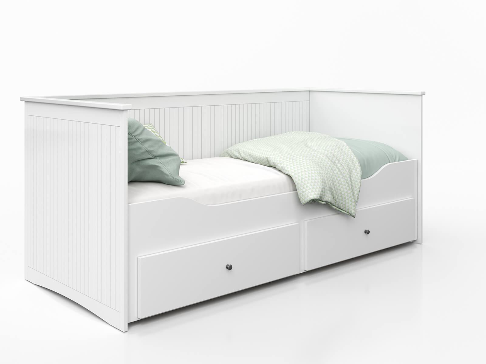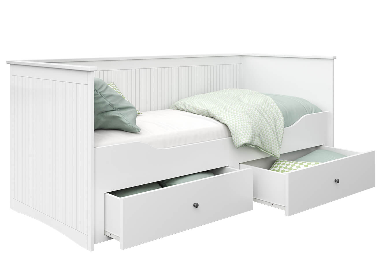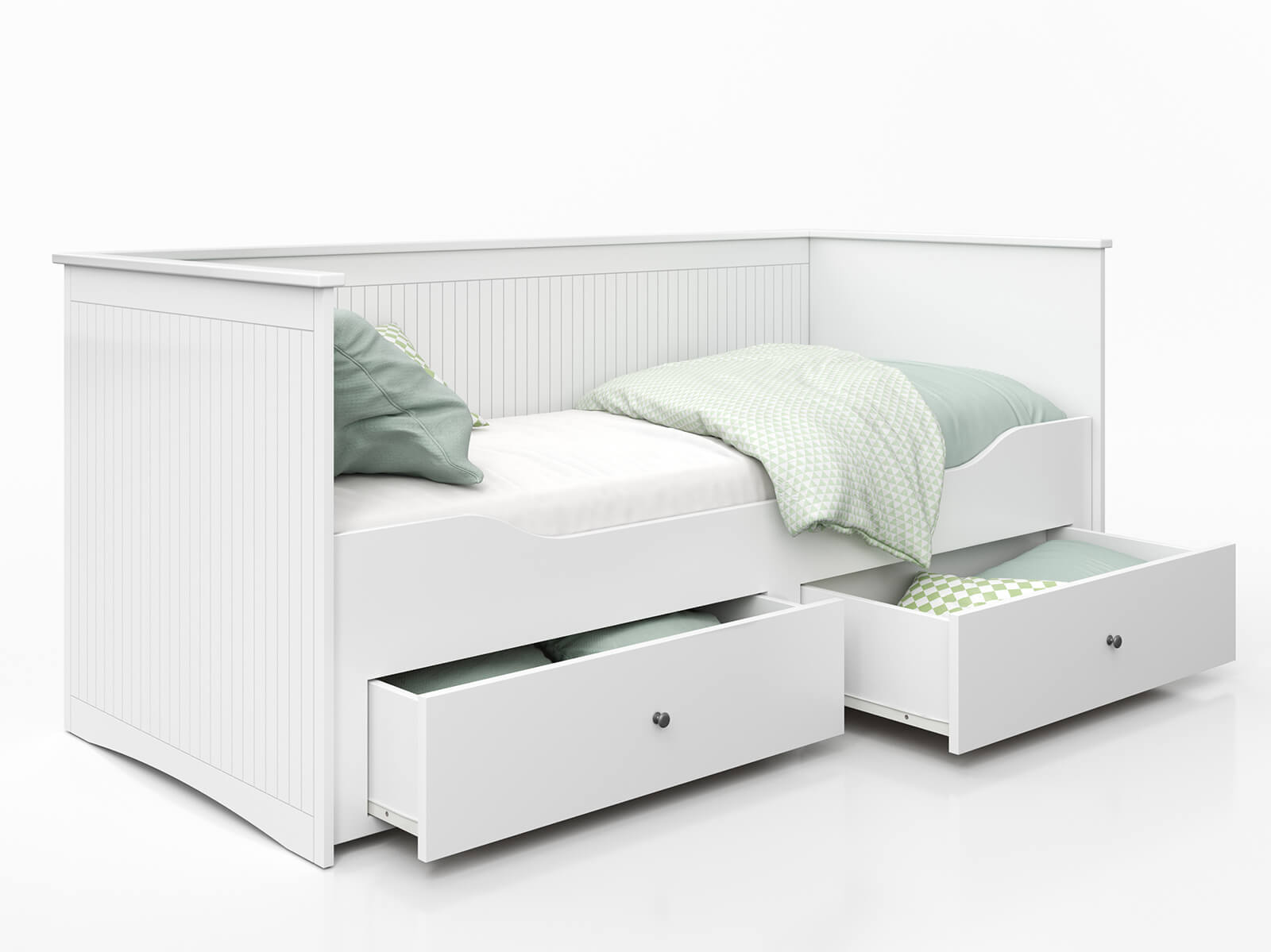 Rozkládací postel 80x200 bílá se 2 zásuvkami, gauč Helmes