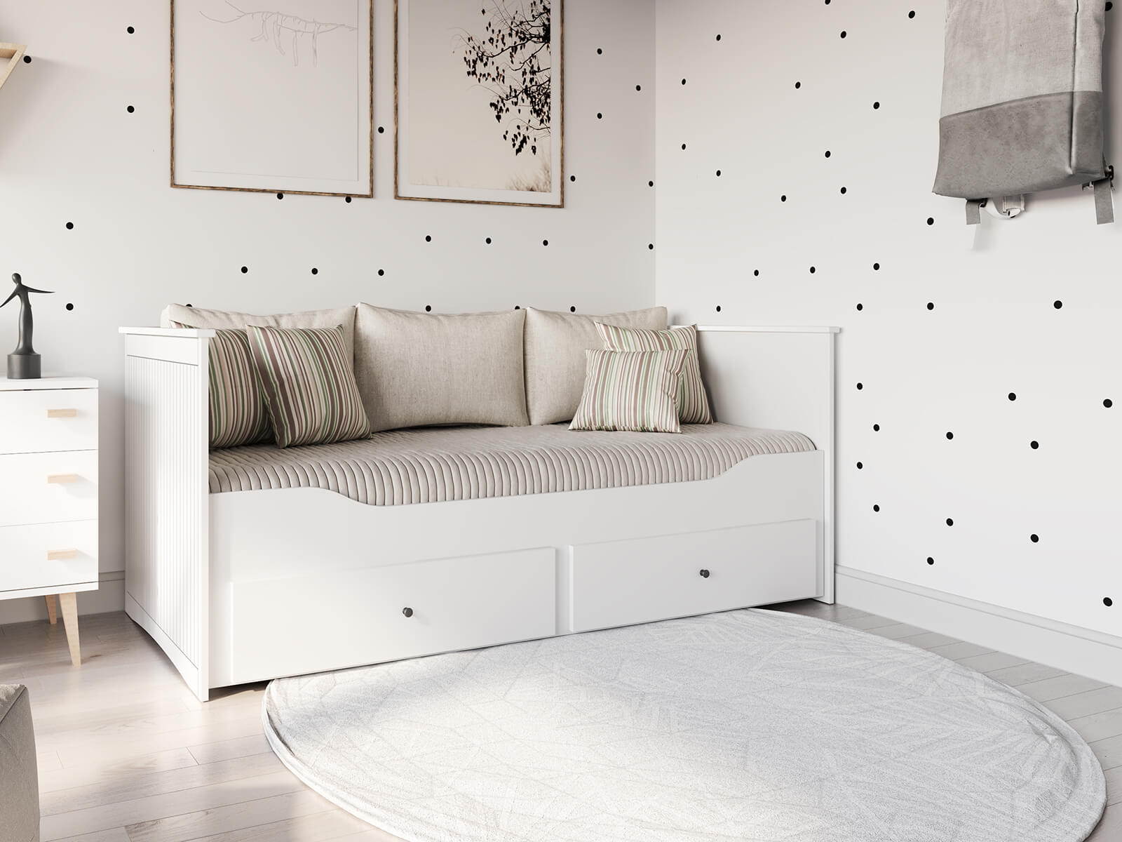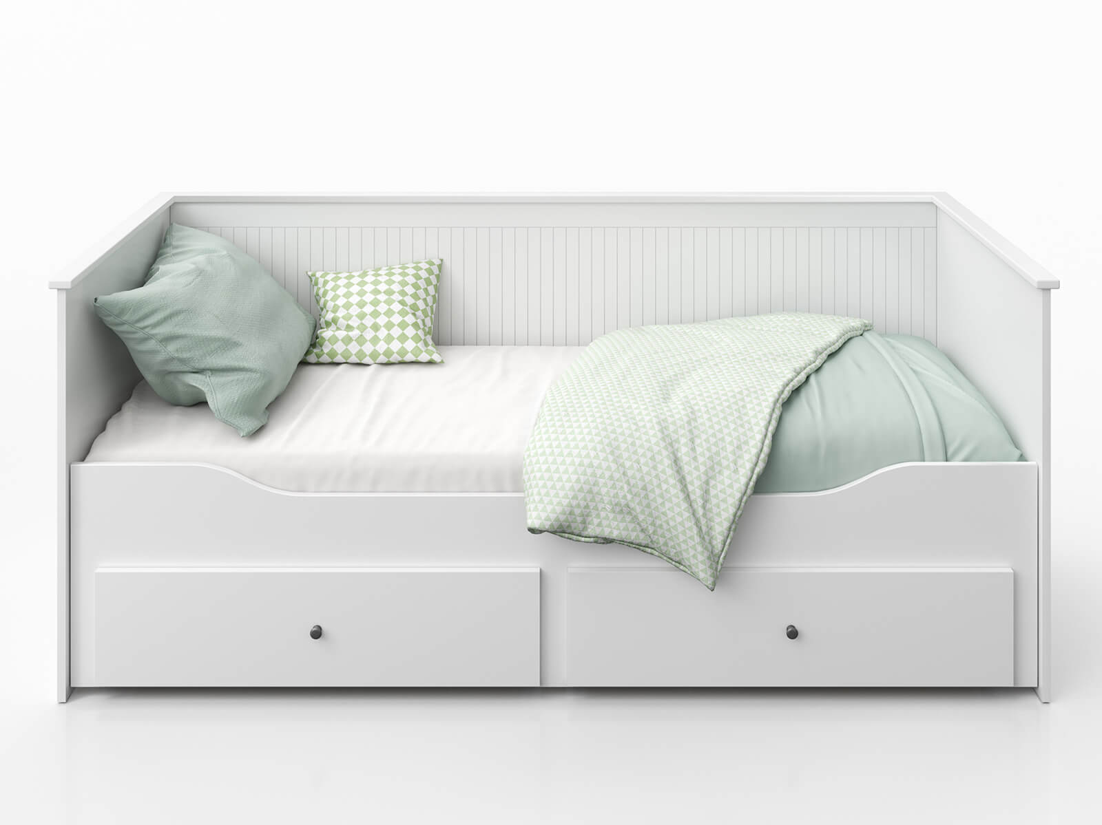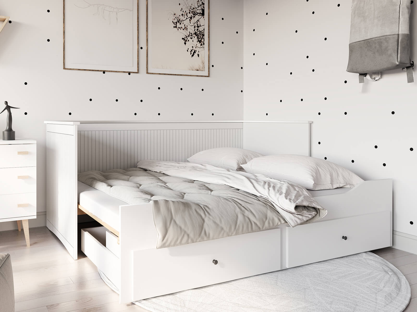 Rozkládací postel 80x200 bílá se 2 zásuvkami, gauč Helmes