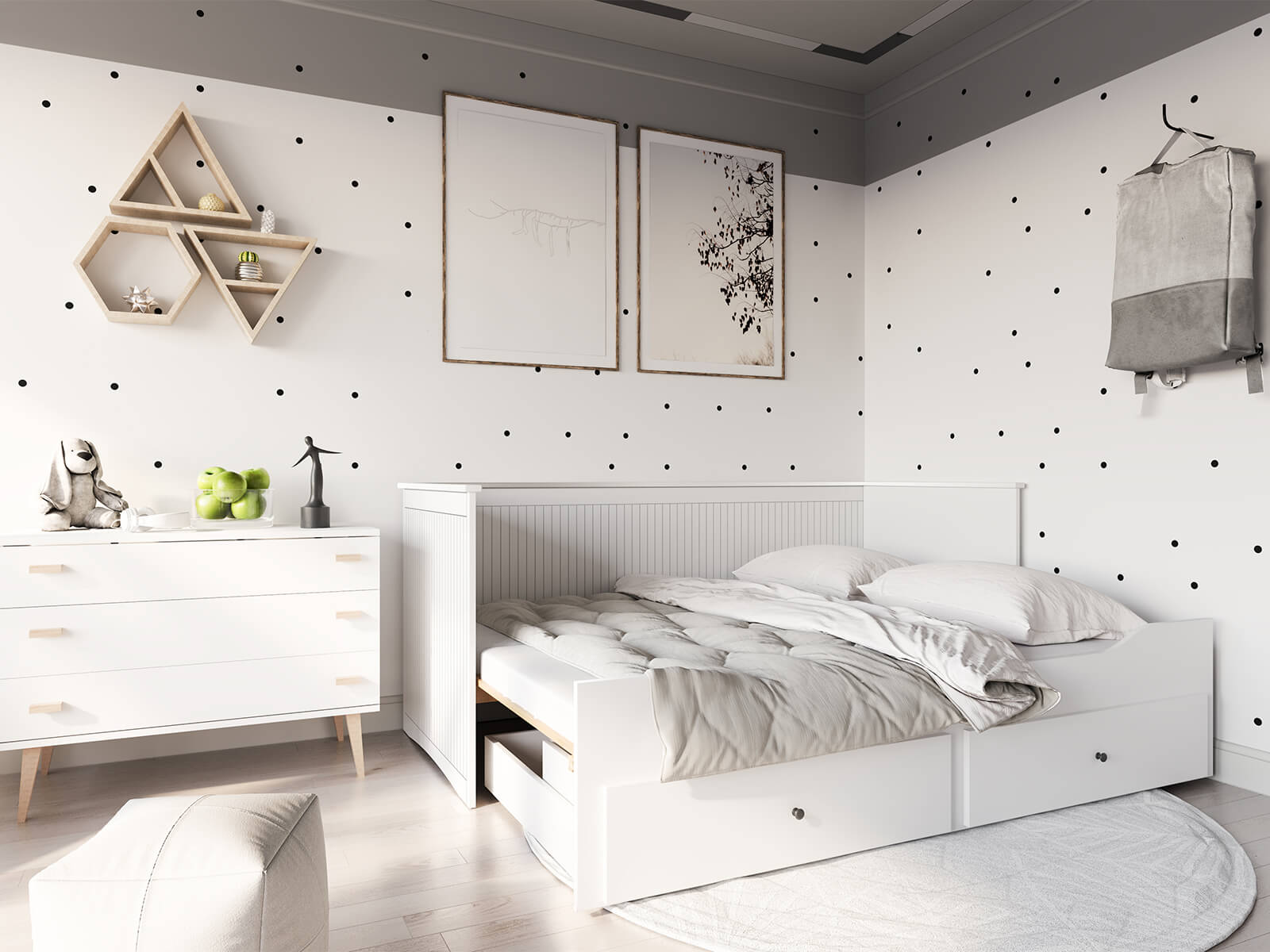 Univerzální design – z ní dělá perfektní postel pro děti, teenagery i dospělé.